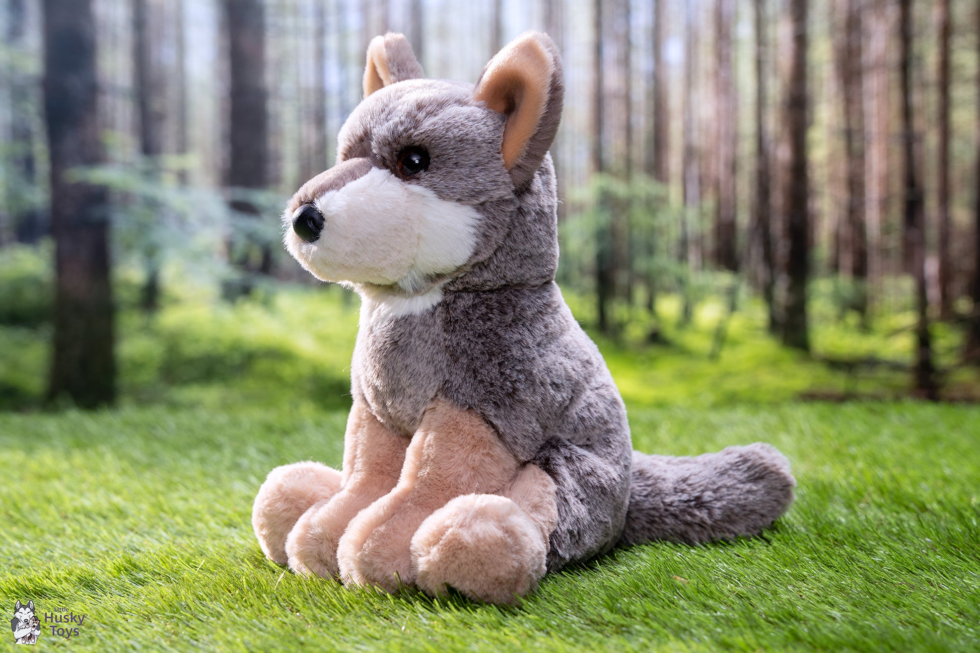 Snuggle up with Albie the Soft Wolf plush and discover the softer side of nature! Albie’s design features an assortment of muted natural colors for a lifelike appearance. Gray faux fur with frosted tips lends his body a grizzled look, while a pale colored bib draws attention to Albie’s face. His large, tan paws are filled with beans for a playful, floppy style that will invite interaction. Wolf lovers of all ages will be drawn in by Albie’s lively, amber colored eyes and huggable shape. Nature has never been so soft and cuddly. Invite our elegant Wolf stuffed animal into your pack and he’ll prove himself a steadfast companion!