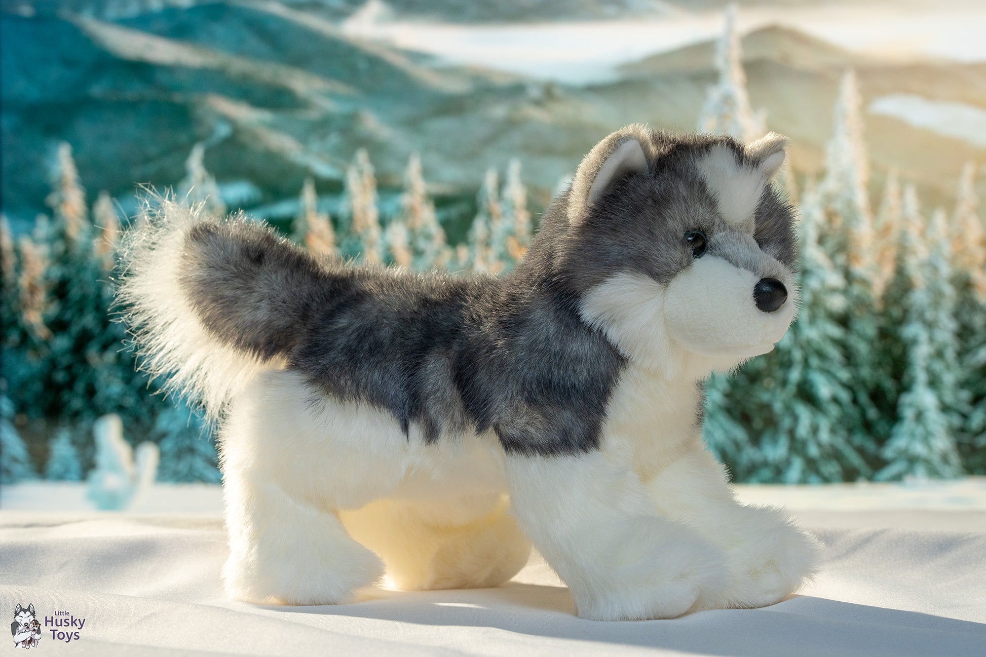 When Joli the plush Husky romps with the other pups, they’re all careful to play by her rules! She may be little, but she’s a bold pup who’s not afraid to stand up for herself! Featuring the classic gray and white coat of the breed crafted in soft plush materials, Joli is an attractive and realistic stuffed animal. A white star accents Joli’s forehead and bright blue eyes stare out from her endearing puppy face. The feathery plume of her tail adds flair. Our careful attention to detail ensures that Joli will find favor with the most discerning of dog lovers. Add this little Husky stuffed animal to your family today and she’ll charm you with her cuddly softness and plucky personality!