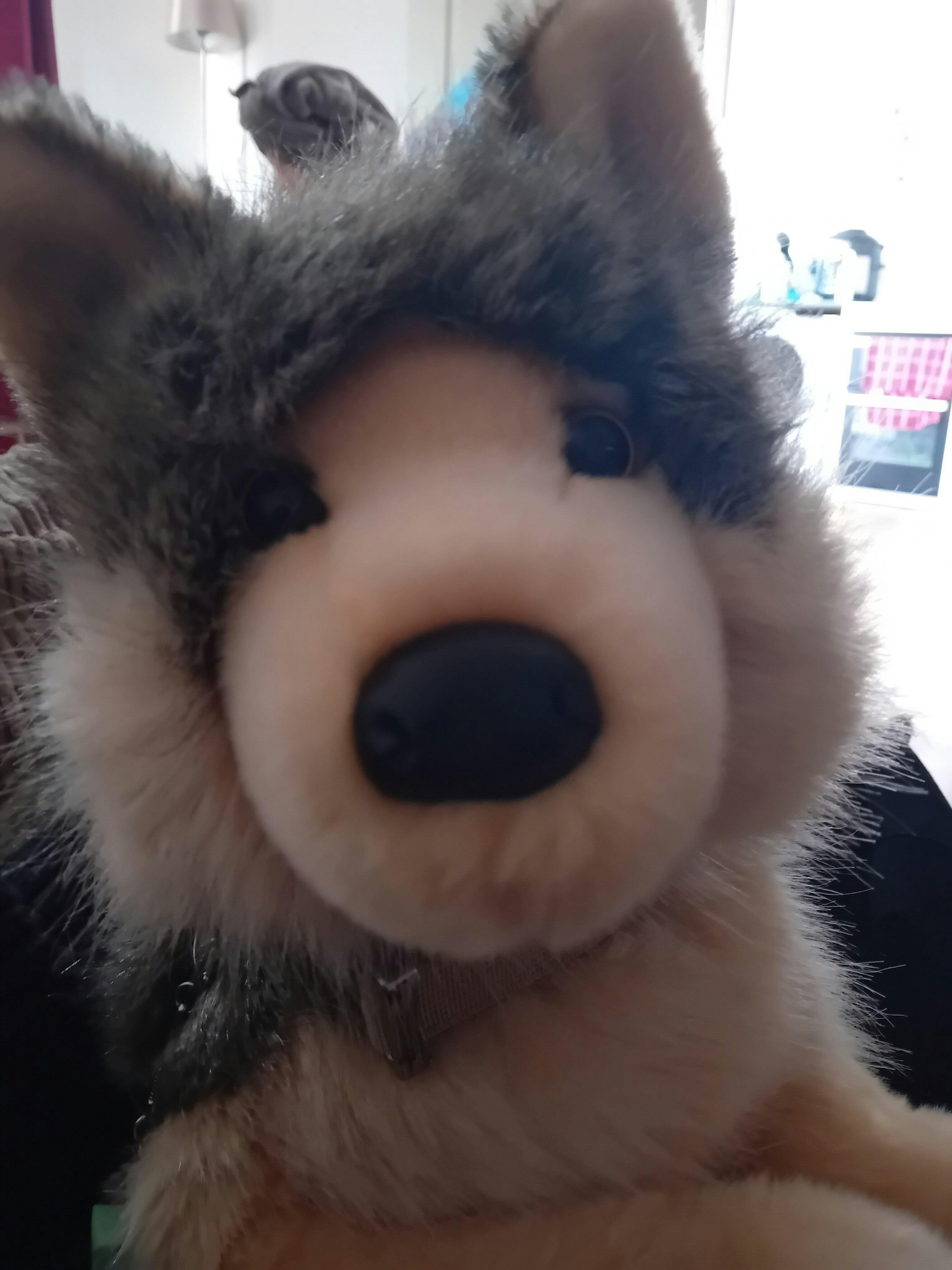 This is one of my favourite plushies wolfs ever, he's so big, soft, fluffy and cuddly and his face is just wonderful! Great sensory stimulation for asd and so comforting to cuddle, couldn't reccommend him or this website enough.