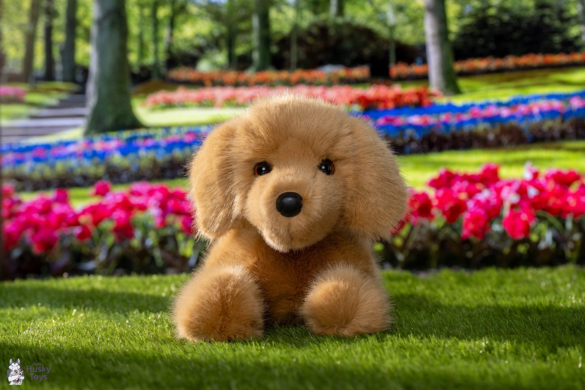 If you’re looking for a special Golden Retriever stuffed animal who is sure to take home the award for “Best in Show,” Oakley’s got what it takes! We’ve tracked down the finest plush materials for the animals in our DLux collection to ensure these dogs come out ahead of the competition. Oakley’s realistic design boasts ultra soft fabrics with personality and distinction. Snuggly soft interior polyester fill and a luxuriously floppy body makes him ideal for hugs. All the loyalty of this faithful breed has been encapsulated in this lovable plush dog. He’ll be there when you want to snuggle or are in need of a reassuring friend. Adopt this handsome pup and he’ll prove himself as a champion companion!