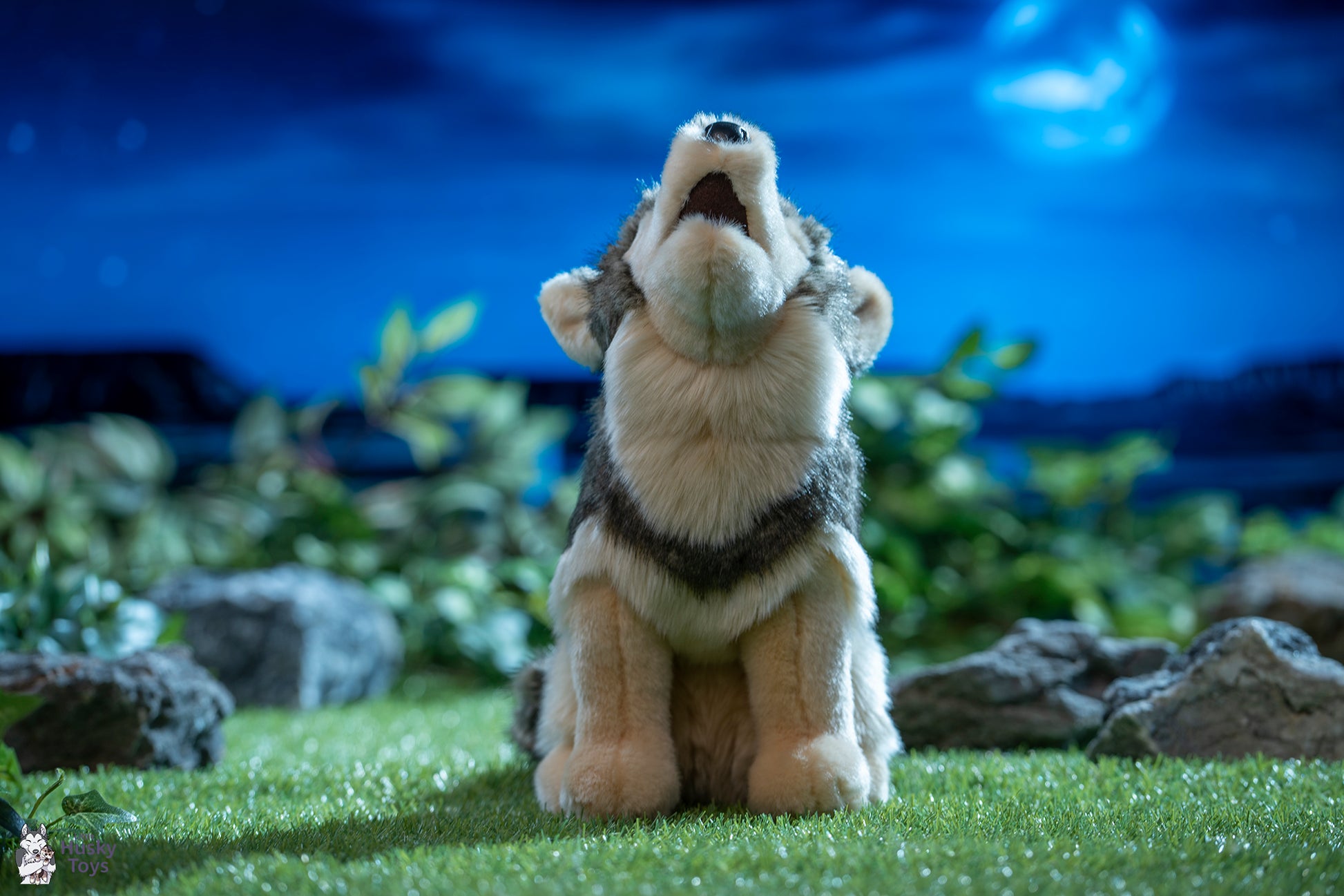 Sing to the night sky with Raina, our lifelike Wolf stuffed animal, and all of nature will return the song! Seated with her head tipped back gracefully, it’s easy to imagine the rousing sound that has captivated the human imagination since time immemorial. Decadently crafted in ultra soft faux fur materials, Raina’s plush coat features a realistic blend of browns and grays with cream colored accent markings. Resilient polyester fill shapes her attractive form but is soft enough for cuddly hugs from the youngest wolf lovers. With an appealing design, Raina is equally suited as an eye catching display piece or as an imaginative friend who’s ideal for playtime adventures. Embrace your wild side and take part in the nighttime chorus with Raina the plush Wolf!e!