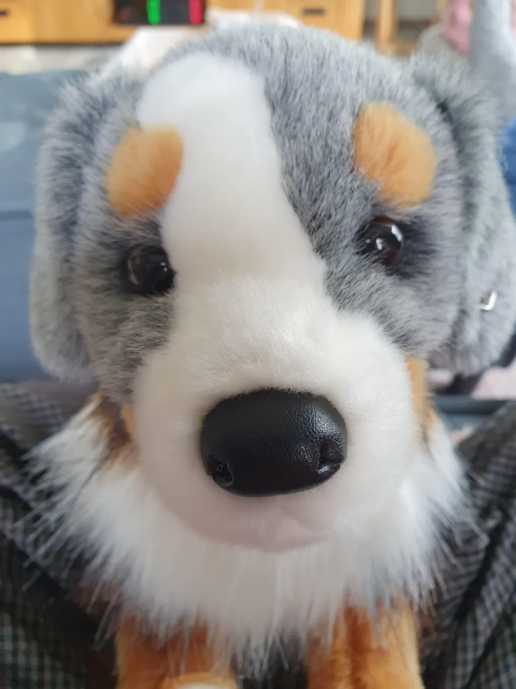Sinclair the Australian Shepherd is full of energy and ready to bounce his way in to your heart. His soft shaggy grey salt and paper fur with rust accents give him a realist look. He'll win over any dog lovers heart with ease.