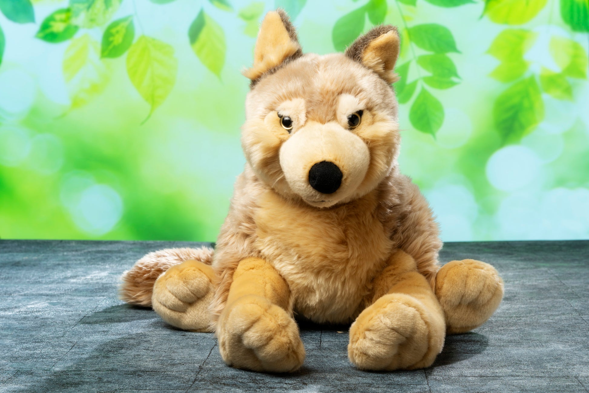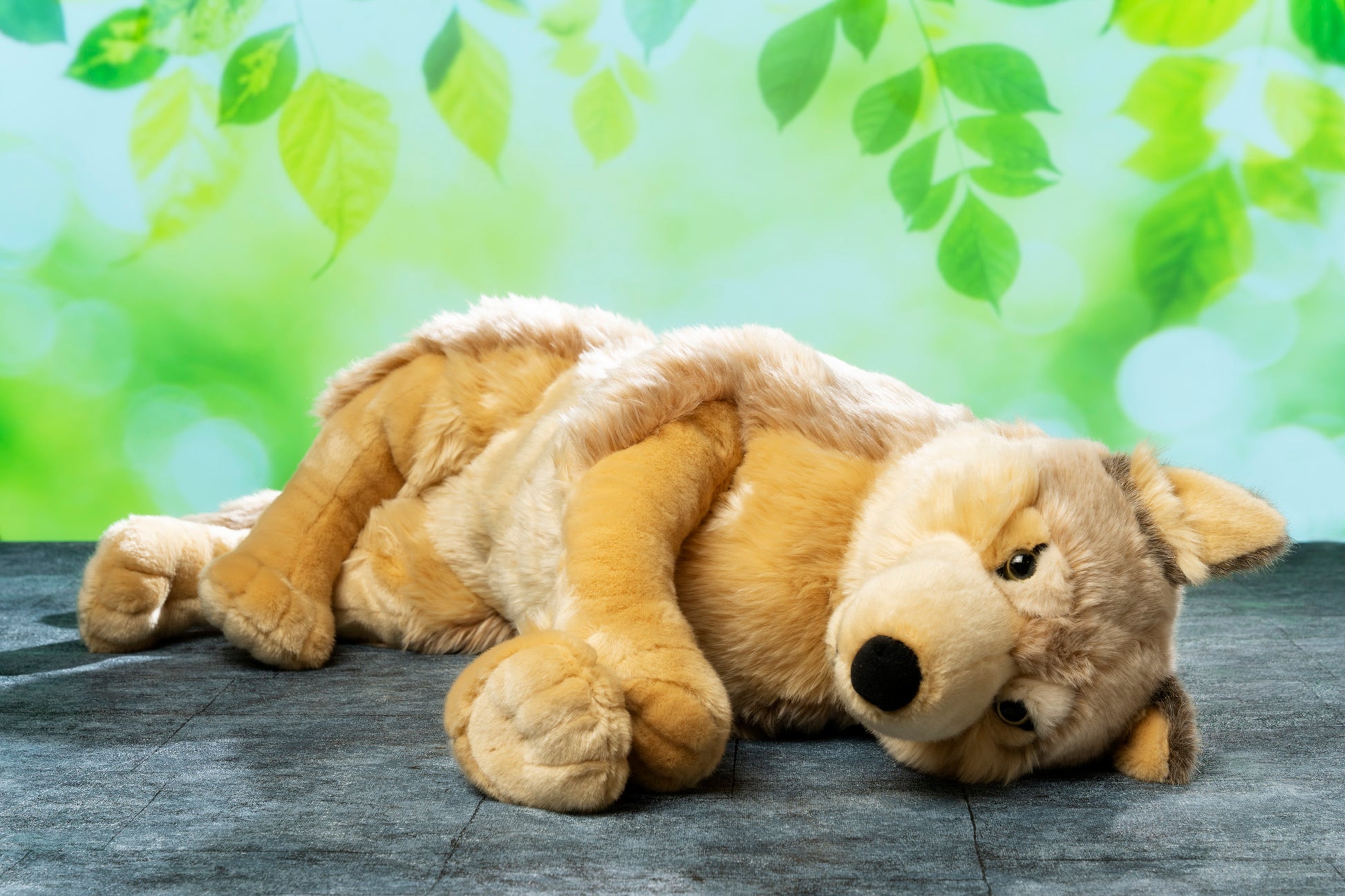 This Jumbo wolf is big, super soft and so very cuddly that you won't want to let them go. Not too floppy or over stuffed, they make the perfect night time companion. This big wolf has weighted bean filled paws that delightfully flop and want to cuddle around you.