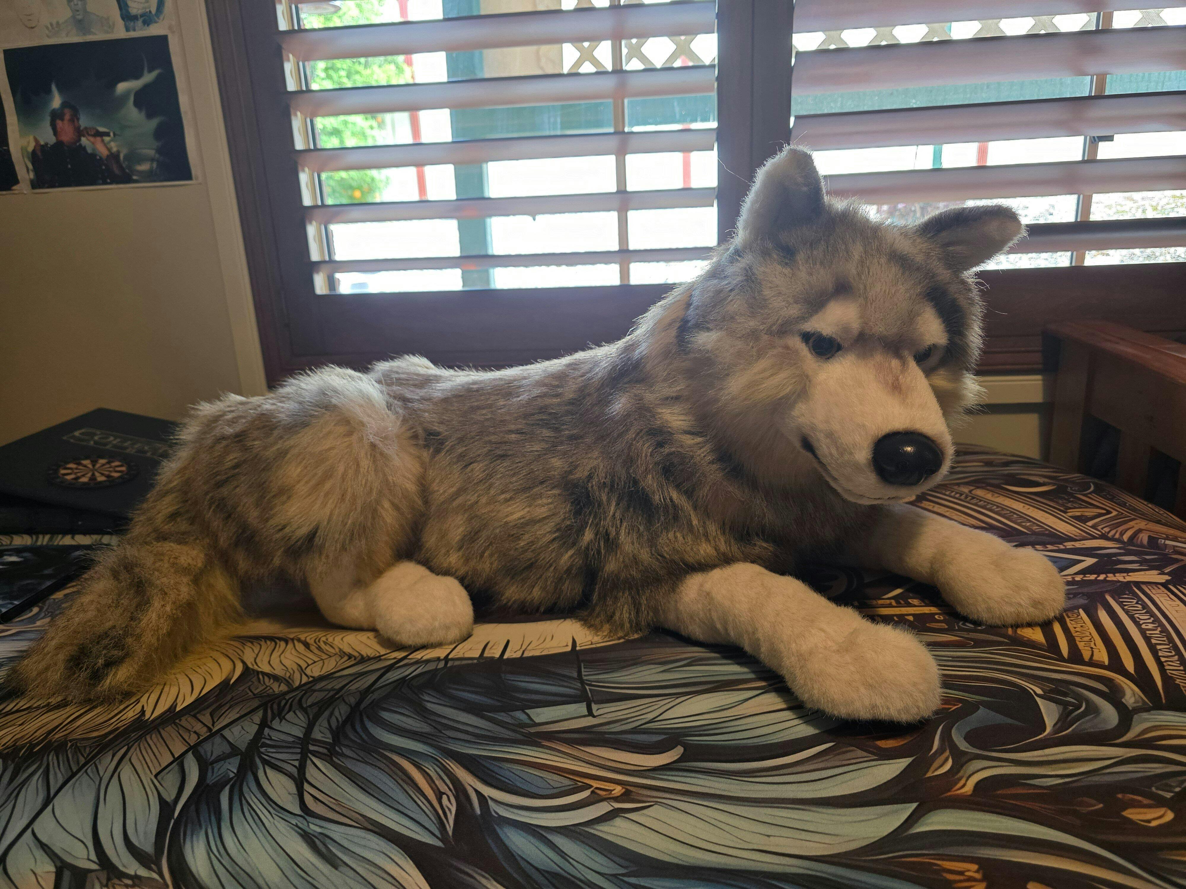 At 71cm/28inches, this wolf is one big plush that would be right at home laying on the sofa or bed.