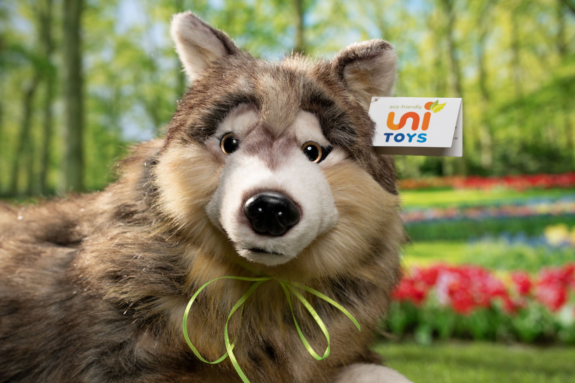 If you like to have a Lifelike Wolf plush, you realy need this super soft Uni-Toys wolf. In real life he is even more beautiful than the pictures. Nice fur collors and a very cute face.